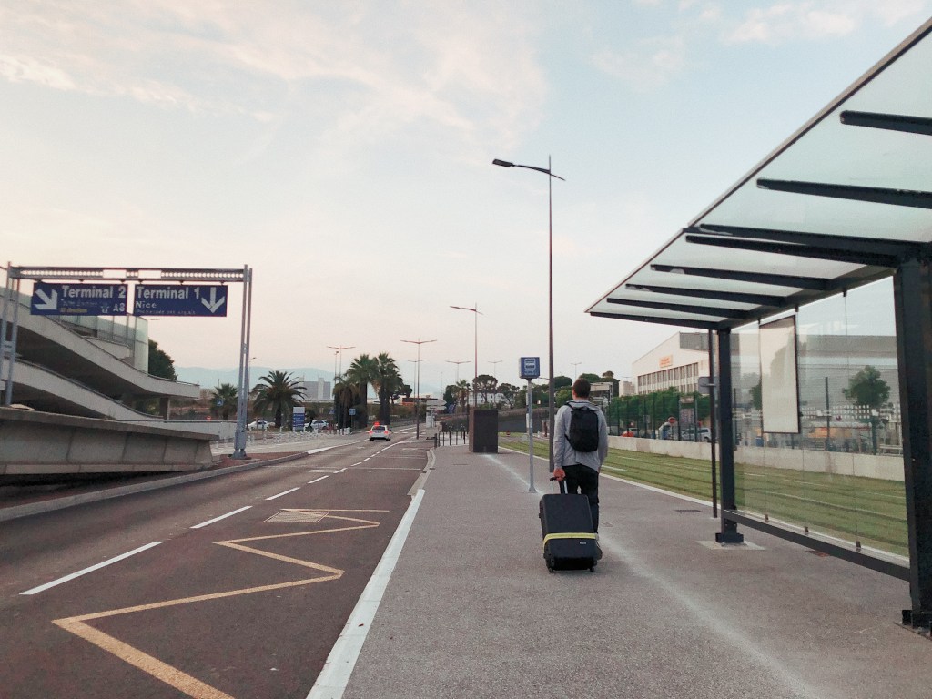 Tụi mình kịp đến sân bay lúc 4h chiều, vẫn kịp check-in để bay. Trộm vía em bé lần đầu bay cũng suông sẻ. Đáp chuyến bay đến Nice lúc 8.30 tối, trễ hơn 1 tiếng so với dự định. Cái chỗ tụi mình thuê căn hộ ở Cannes trong hai ngày chỉ làm việc tới 8h tối thì nghỉ. Đấy vẫn đinh ninh là đến nơi sẽ gọi điện cho bọn họ báo là tụi mình trễ nhưng mà máy bay lại đáp trễ. Trong lúc anh đi lấy hành lý mình và bạn nhỏ ngồi đợi, mình gọi mãi, gọi mãi bên kia chả thấy ai bắt máy. Theo kế hoạch thì lấy hành lý xong thì tụi mình sẽ đi tàu đến Cannes, vẫn nghĩ là chắc ra khỏi sân bay là sẽ bắt được tàu đi Cannes thôi, tới chỗ đó rồi sẽ tính sau có nên thuê chỗ khác ngủ không.