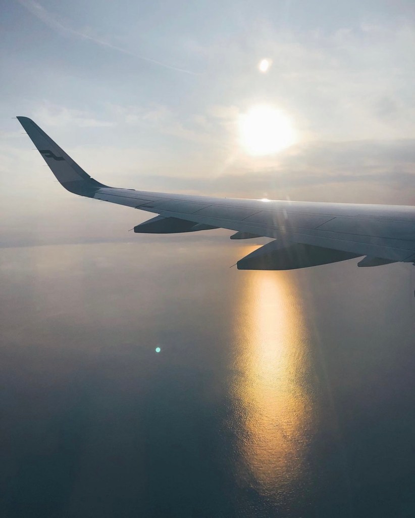Từ nhà đến sân bay tầm 15′ đi tàu điện, trạm tàu cách nhà khoảng 2km, do có nhiều thứ phải làm nên là tụi mình bỏ lỡ chuyến buýt đi đến trạm tàu, xong phải cuốc bộ cùng với hành lý. Đồ mang cũng nặng, vì tụi mình mang theo gần chục ký toàn là sữa hộp cho bé. Kéo 1 hồi thì phát hiện vali bị hỏng mất 1 bánh xe. Anh mình nóng tính đã càm ràm từ nhà rồi thêm cái vali làm ảnh nổi điên. Mình cũng sợ không kịp máy bay nên cũng chạy như điên. Khởi đầu là thấy có gì đó sai sai rồi.