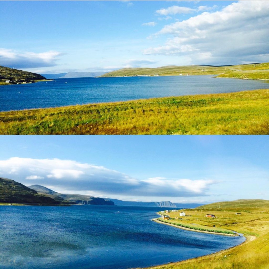 Chúng tôi đi đến khu vực có những dãy núi trải dài màu mã não. Tôi tình cờ phát hiện trên một trang báo nào đó miêu tả cảnh những «dãy núi ở Na Uy lung linh sắc mã não». Nên tôi xin bắt chước sử dụng cụm từ này. Chợt trong đầu tôi nảy ra ý định leo lên đỉnh núi chơi, những ngọn núi nhìn có vẻ không cao mấy. Edgar lập tức hưởng ứng ý kiến của tôi, còn anh thì vẫn ậm ừ suy nghĩ xem nên để xe ở đâu cho hợp lý. Chúng tôi đi đến một cái làng trên một ngọn đồi dưới chân núi. Tôi gọi đó là làng nhưng thực ra, ở đó nhiều lắm chỉ có bốn ngôi nhà, xây cách nhau không xa. Anh mặc thêm áo, đội nón. Edgar cũng mượn áo ấm của anh mặc vào. Tôi mặc quần ngắn bị anh la nên phải quay vào trong xe thay quần dài và mặc thêm một lớp áo. Tôi đang lúi cúi mặc quần, thì bất ngờ xe của chúng tôi được một «bạn trẻ lạ mặt» viếng thăm.