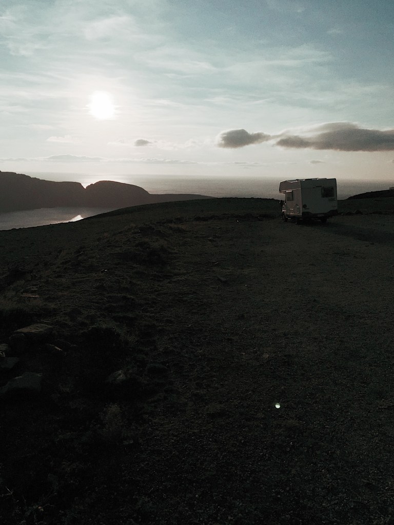 Đường đèo lên đỉnh Nordkapp (tiếng Na Uy – tiếng Anh: The Noth Cape) thật quanh co, con đường nhỏ hẹp, hành lang che chắn lại rất đại khái, mỗi lần có một chiếc xe xuống đèo, chạy ngược chiều, đi ngang qua chúng tôi làm tim tôi lại giật thót.