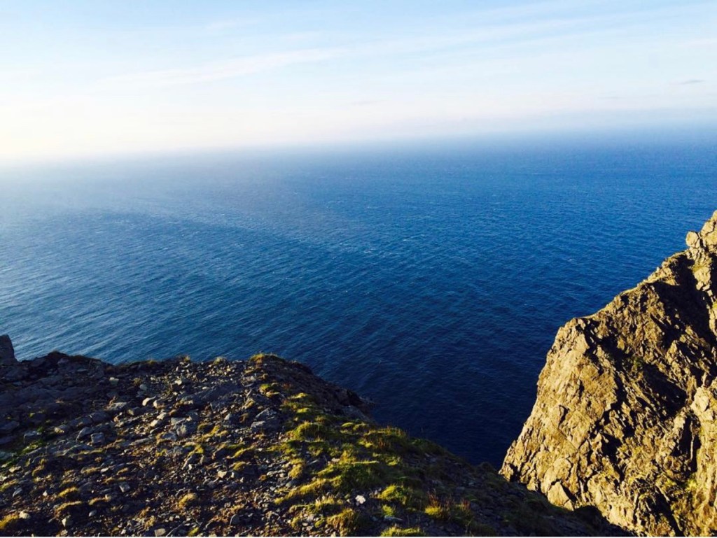Chúng tôi đến thành phố Honningsvag, nắng chiều nhảy múa trên dãy núi đá như đang chào đón chúng tôi và tạo nên màu vàng rất đẹp mắt, những đám mây đen như trốn đâu mất, có lẽ đã bị gió thổi trôi theo hướng khác rồi.
