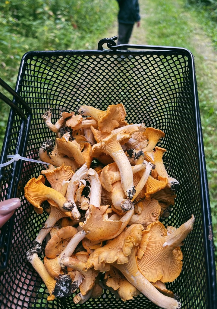 Trước khi về VN tụi mình vẫn tranh thủ đi vào rừng hái nấm, và đó là lần duy nhất trong năm đi hái nấm. Năm nay tìm được một mớ nấm vàng yêu thích của ông chồng và nấu món súp nấm yêu thích.