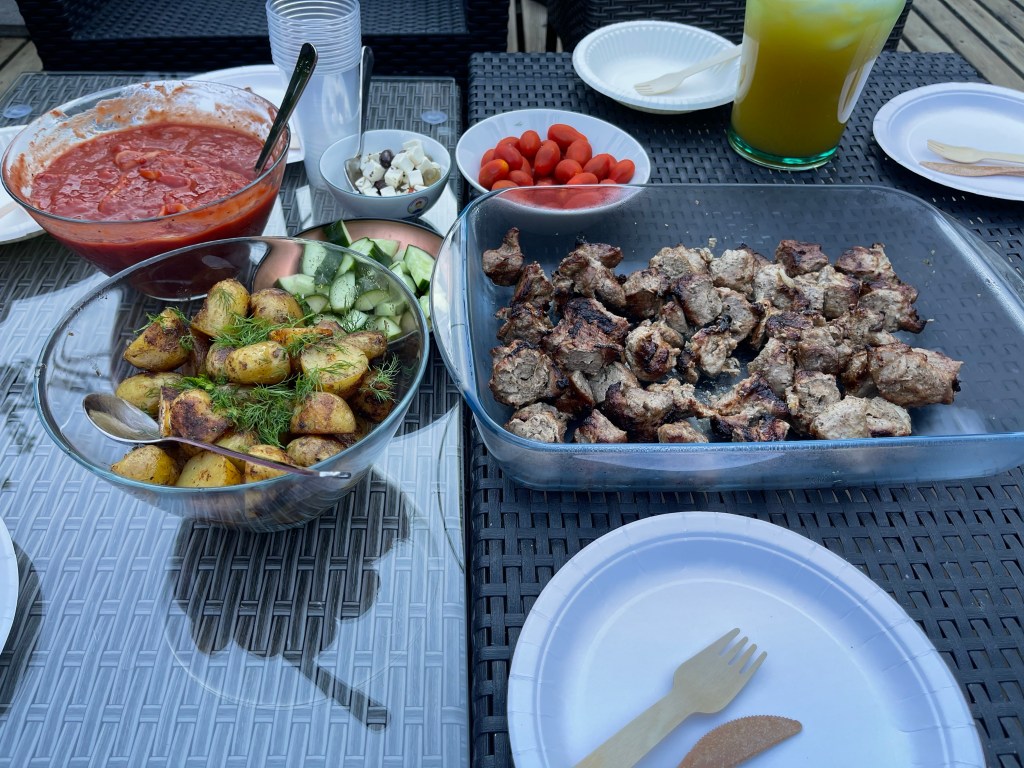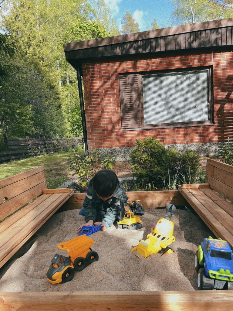 Cuối tháng 6 có lễ ở Phần Lan là Juhannus. Lần đầu tiên trong đời mình tiếp khách gia đình. Gia đình anh bạn thân của chồng có chị vợ Việt kiều (khái niệm Việt kiều của mình là người Việt Nam sinh ra và lớn lên ở nước ngoài) qua bên nhà mình chơi hai ngày, tổ chức cùng nhau ăn uống xem phim, tắm sauna các kiểu. Hôm sau cả hai nhà cùng nhau đi công viên nước cho bọn nhỏ bơi lội và ăn uống ở đó luôn. Mình thì không thích tắm nên mỗi lần đến đó chỉ dám ngồi ngó người ta bơi lội rồi tặc lưỡi kiểu “ lạnh thế mà bọn nó bơi được!”.