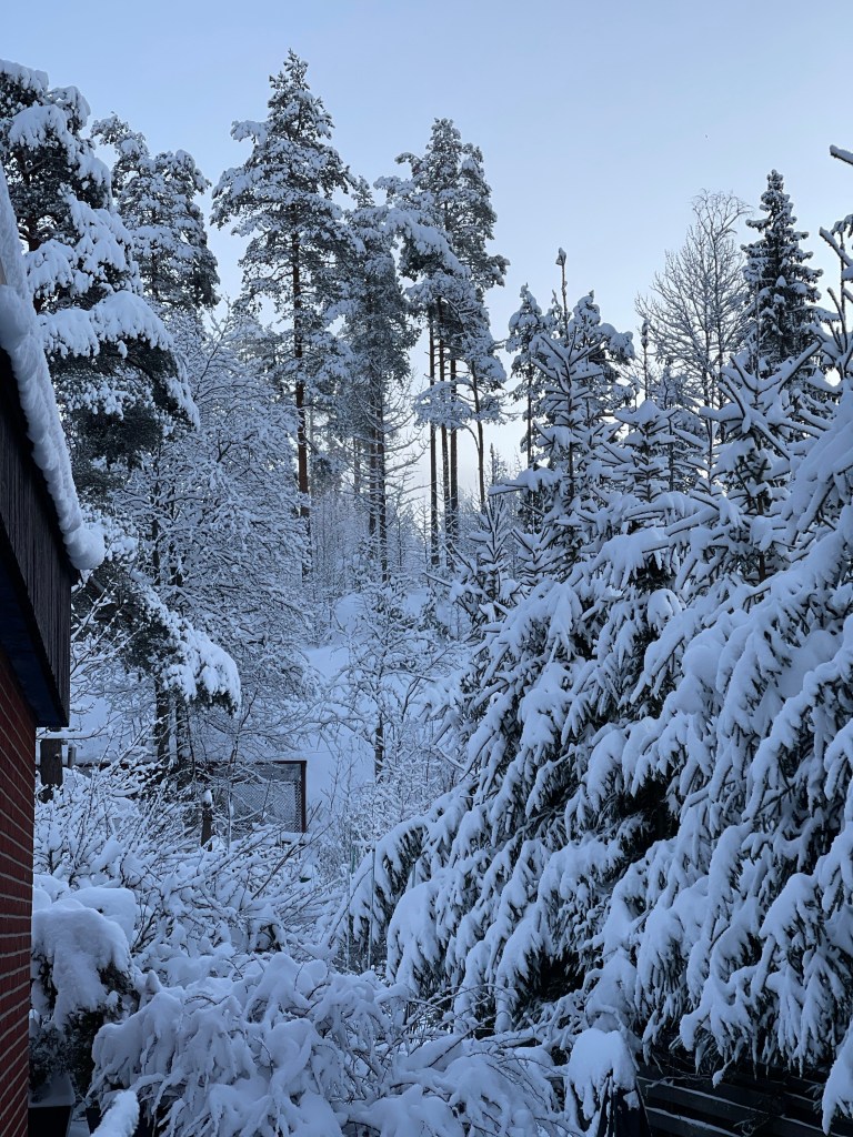 Tuyết lúc đó cũng đã rơi rất nhiều, cả gia đình có dịp cùng nhau vào rừng chơi tuyết. Phía sau căn hộ cũ có một khoảng sân nhỏ, lần đầu tiên cả nhà nặn người tuyết to vậy, và đó cũng là lần cuối cùng. Từ tháng 12/2021 tụi mình đã đi xem một số căn nhà riêng để chuyển đi.