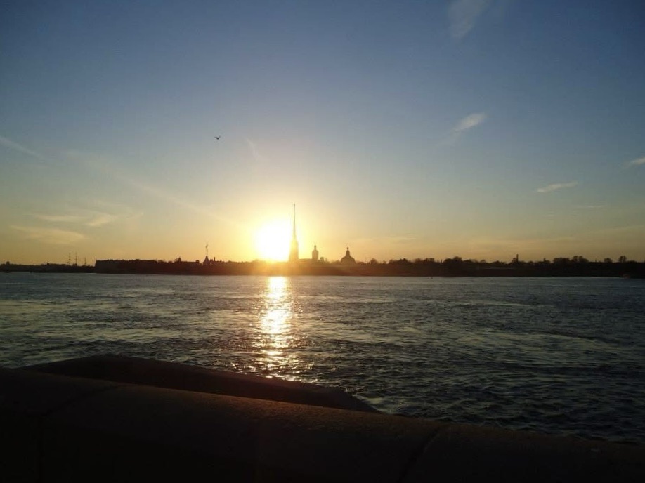 Lên đường không chút lo âu và hồn nhiên để tâm hồn hoà vào phố phường, cái lạnh se se trước hoàn hôn đúng làm cho người ta cứ nhớ mãi. Tôi như tan chảy khi nhìn thấy hoàng hôn trên sông Neva, mặt trời dần dần lặn xuống, nhìn từ bên này sông thấy pháo đài Petropavlovski sừng sững bên mặt trời, in bóng xuống mặt nước tạo nên một bức tranh tuyệt đẹp.