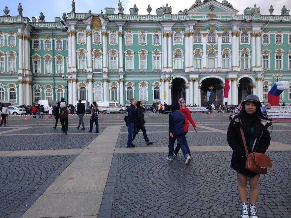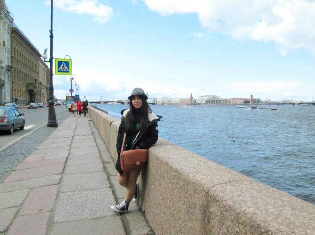 Đó là một ngày đầu tháng 5, thời tiết ở Saint vẫn còn rất lạnh, một phần do thành phố bên cạnh sông nên gió cũng nhiều và mạnh hơn bình thường, một phần do lúc đó ở Moskva chúng tôi đã bắt đầu đón những ngày nắng ấm đầu tiên, và cả phòng tôi đều nghĩ là “chắc Saint cũng thế”, vác vali lên phương Bắc với toàn đồ mùa hè, cũng hên còn mang theo áo lạnh mặc mùa đông. Nhưng thường thì chúng tôi phải mặc nhiều lớp mới đủ ấm. Mọi thứ quá mới mẻ, đẹp đến từng mét vuông, cả thành phố trông như một bảo tàng ngoài trời vậy. Chúng tôi mải mê vừa đi vừa chụp ảnh làm kỷ niệm, đi qua biết bao nhiêu nơi thú vị, chúng tôi đi bộ đủ lâu, để cái lạnh đủ thấm vào người làm rét run lên, mặt tái, tay run, chân như muốn trụ ko nổi nữa, môi khô, răng gần như muốn đánh cầm cập vào nhau. Chúng tôi đi bên nhau, đứa này nắm tay đứa nọ, thỉnh thoảng lại tạo thành vòng tròn ôm lấy nhau để sẻ chia hơi ấm. Đoạn đường cứ như mỗi lúc một dài hơn, nhiều lúc định bỏ cuộc không muốn đi tiếp nhưng nhìn lại phía sau thì quay lại còn xa hơn, chỗ đó lại chẳng thể tìm được bến tàu điện ngầm nào.