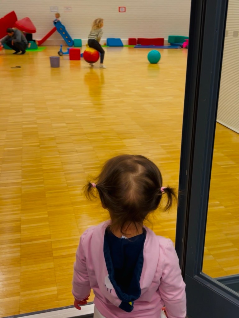 Thường khi vào cửa chính, sau khi cất áo lạnh ở móc treo xong thì chúng tôi sẽ rẽ sang phải để đến tới gian phòng thể thao – nơi yêu thích của bọn nhỏ, vì chúng nó có thể chạy nhảy thoải mái thoả thích ở đó. Ở phòng này mới gắn thêm cái lưới bóng rổ nên càng sôi động hơn.